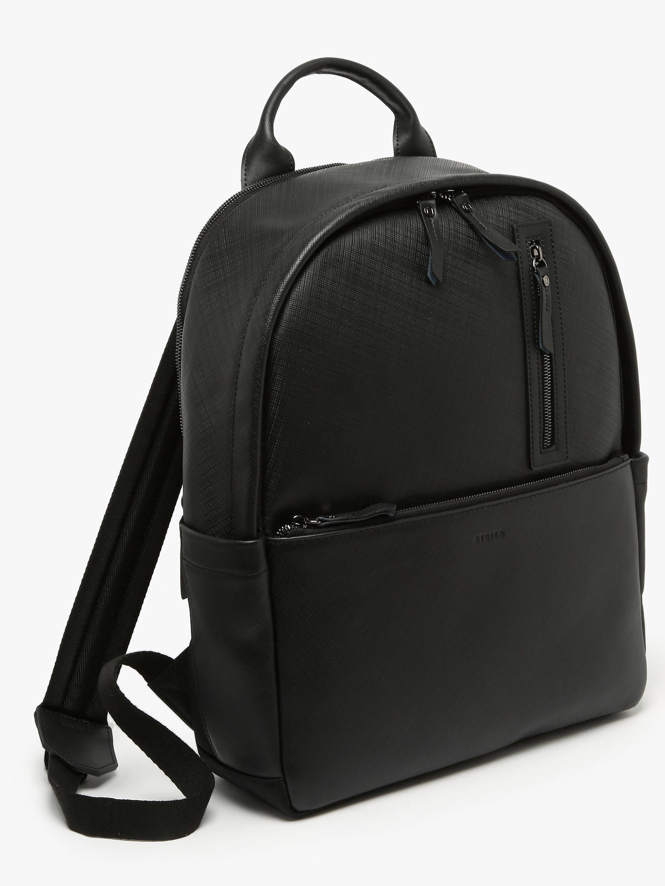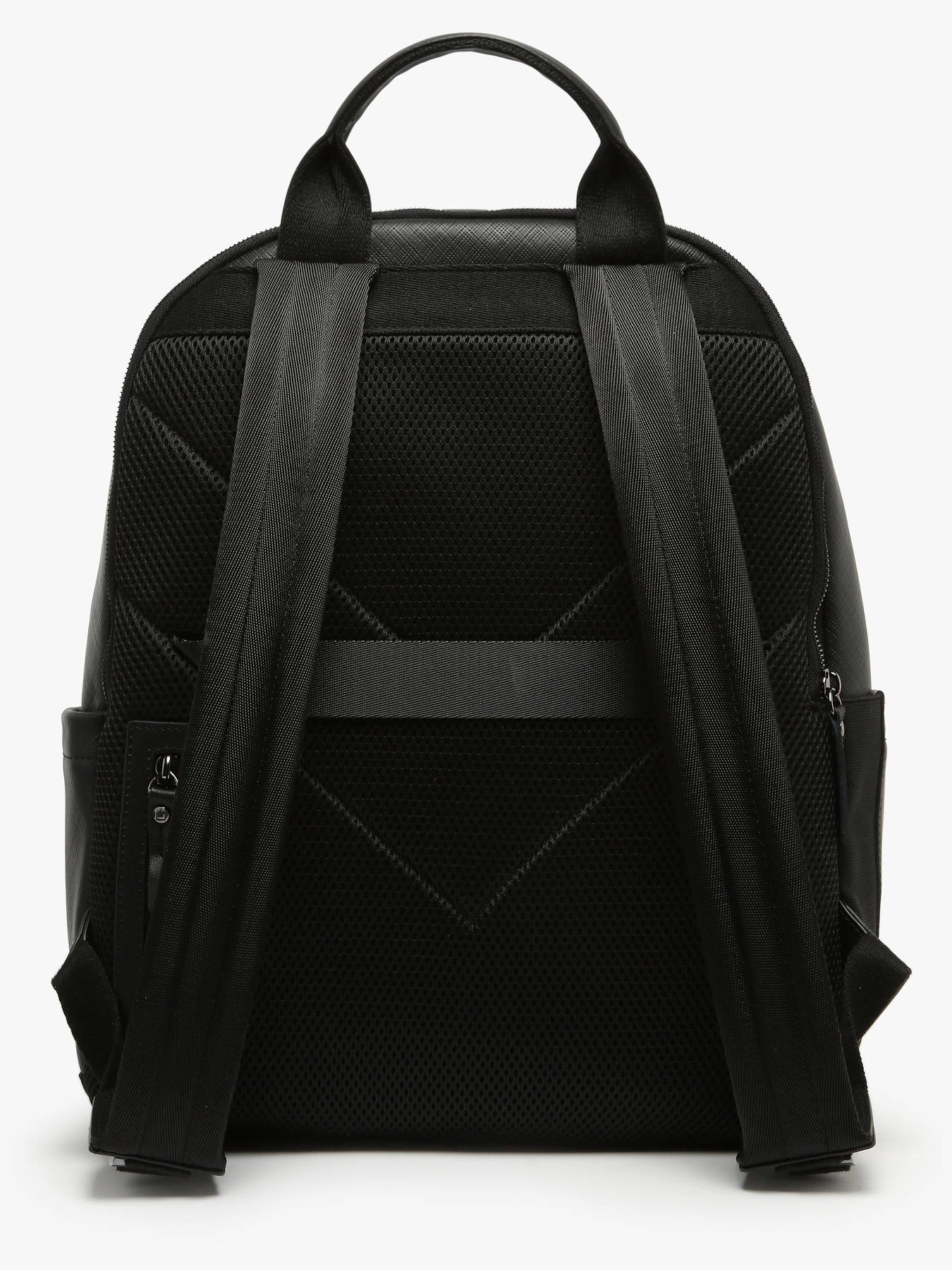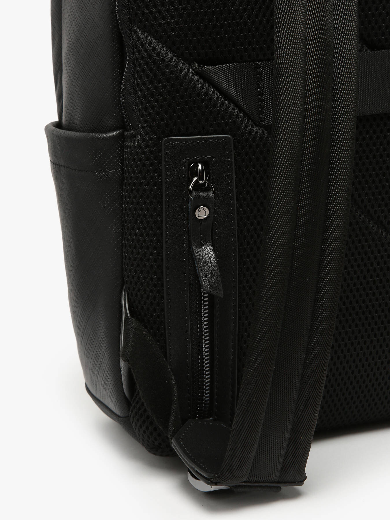 This business backpack from the Flèche line, made of textured leather, combines elegance and functionality. It features a telescopic handle pass-through, two front pockets, one back pocket, and two side pockets for optimal storage. Inside, it is divided into two compartments, with three simple pockets, one quick-access pocket, and a reinforced compartment for a 15"" laptop.