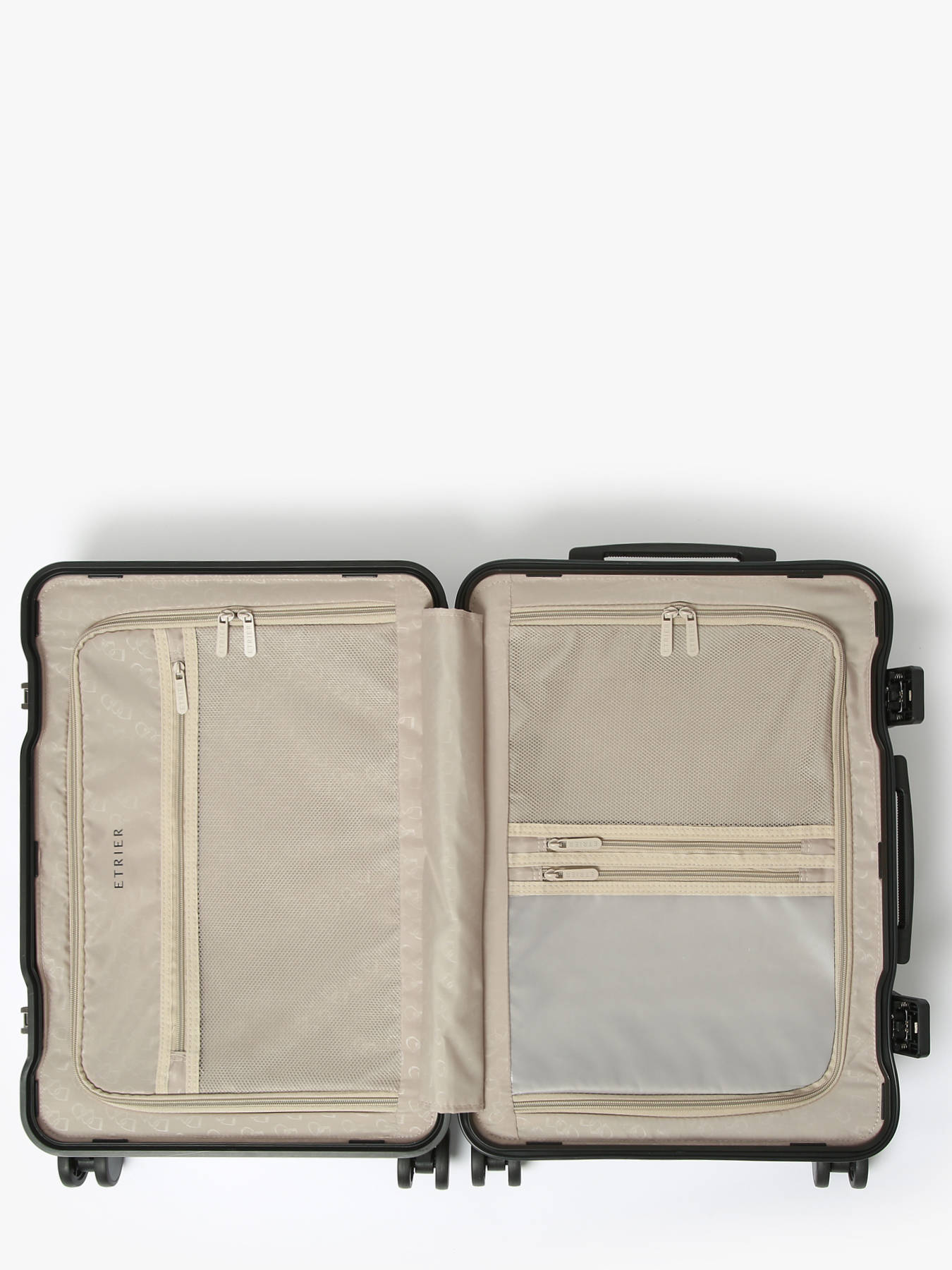 The WASHINGTON line cabin suitcase combines elegance and functionality for your travels. Equipped with 4 twin wheels, a sturdy aluminum frame and a multipoint locking system secured by two TSA locks, it guarantees a worry-free journey. Its refined design, with a tone-on-tone Etrier logo and silver print on the handle, and its 50L volume make it the perfect companion, available in black or silver, for getaways that combine style and practicality.