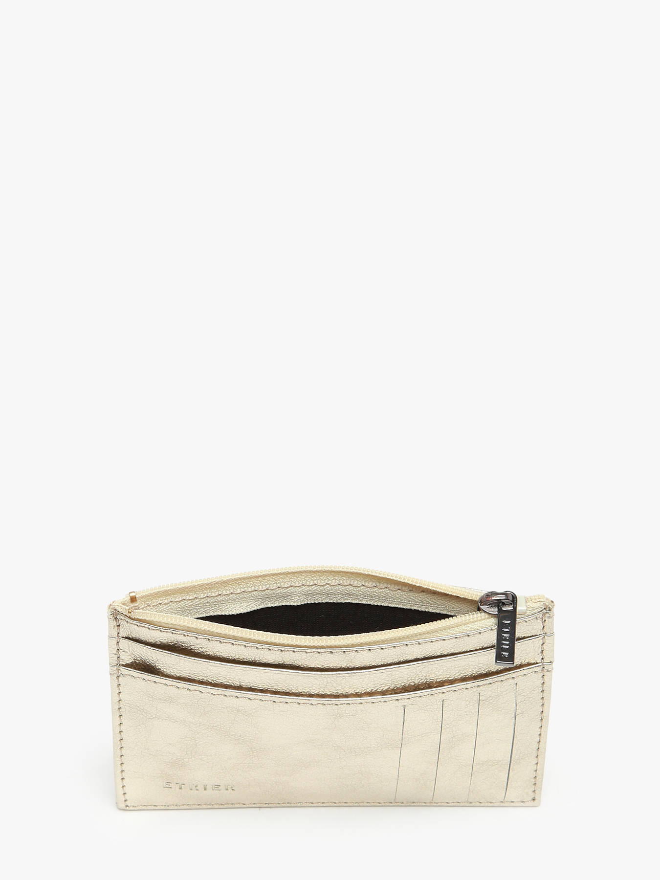 An Etrier leather cowhide wallet offers artisanal quality. Its zip closure secures your belongings. Inside, a simple pocket and six card slots organize your essentials.