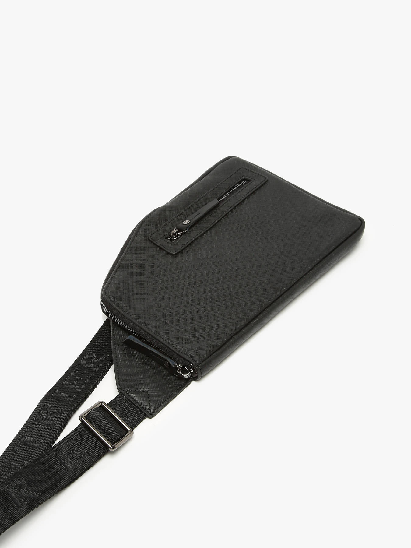 This crossbody bag from the Flèche line, made of textured leather, combines elegance and functionality. It offers a multiposition design with two attachments for both right- and left-handed users. It features a front pocket for easy access to your essentials, and inside, it includes one simple pocket and one quick-access pocket for optimal organization.