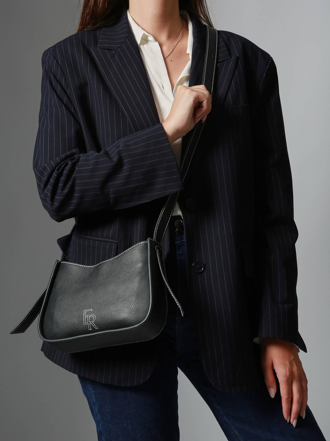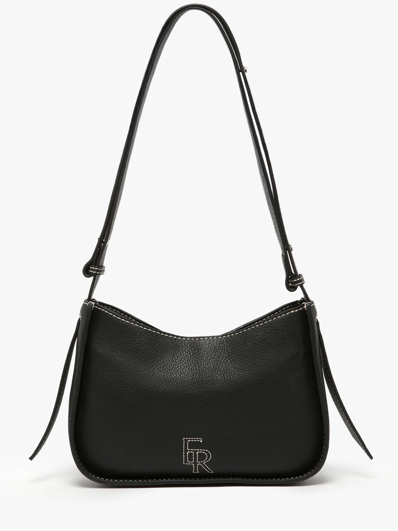 The ETRIER Foudre shoulder bag returns in a larger size, combining urban style with refinement. Made of leather, it features a logo highlighted by contrasting topstitching, adding a bold touch to its modern design. The zip closure secures your belongings, while the interior offers a slip pocket and a zipped pocket for optimal organization. The adjustable strap allows for shoulder or crossbody wear, providing perfect versatility for everyday use.