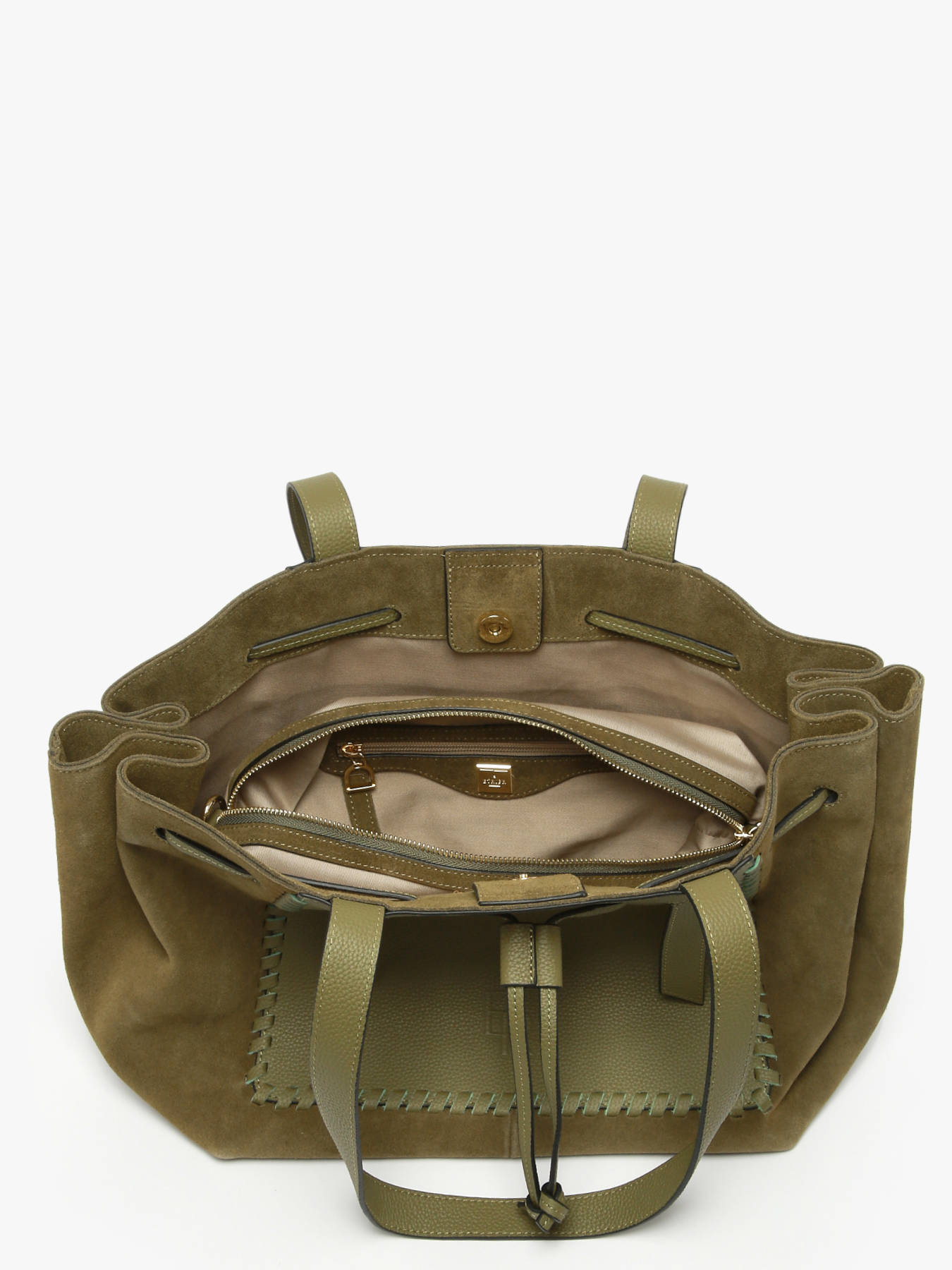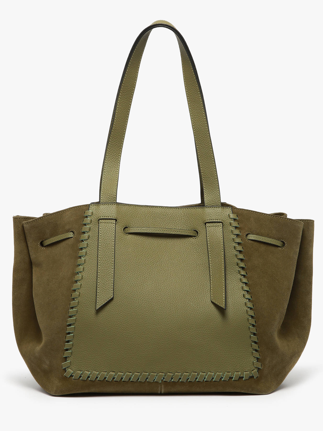 The shoulder bag from the BRUMBY line by ETRIER is a tote crafted in a mix of smooth leather and suede, enhanced by an elegant braided detail inspired by the brand’s iconic style. This spacious model, sized to fit A4 documents, easily accommodates a 13'' laptop while maintaining a refined silhouette. Inside, a large removable cotton pouch with a zip closure keeps your belongings protected and well-organized, thanks to its zip pocket and slip pocket. Designed to be worn comfortably over the shoulder, this bag combines durability and sophistication through its carefully crafted braided accents.