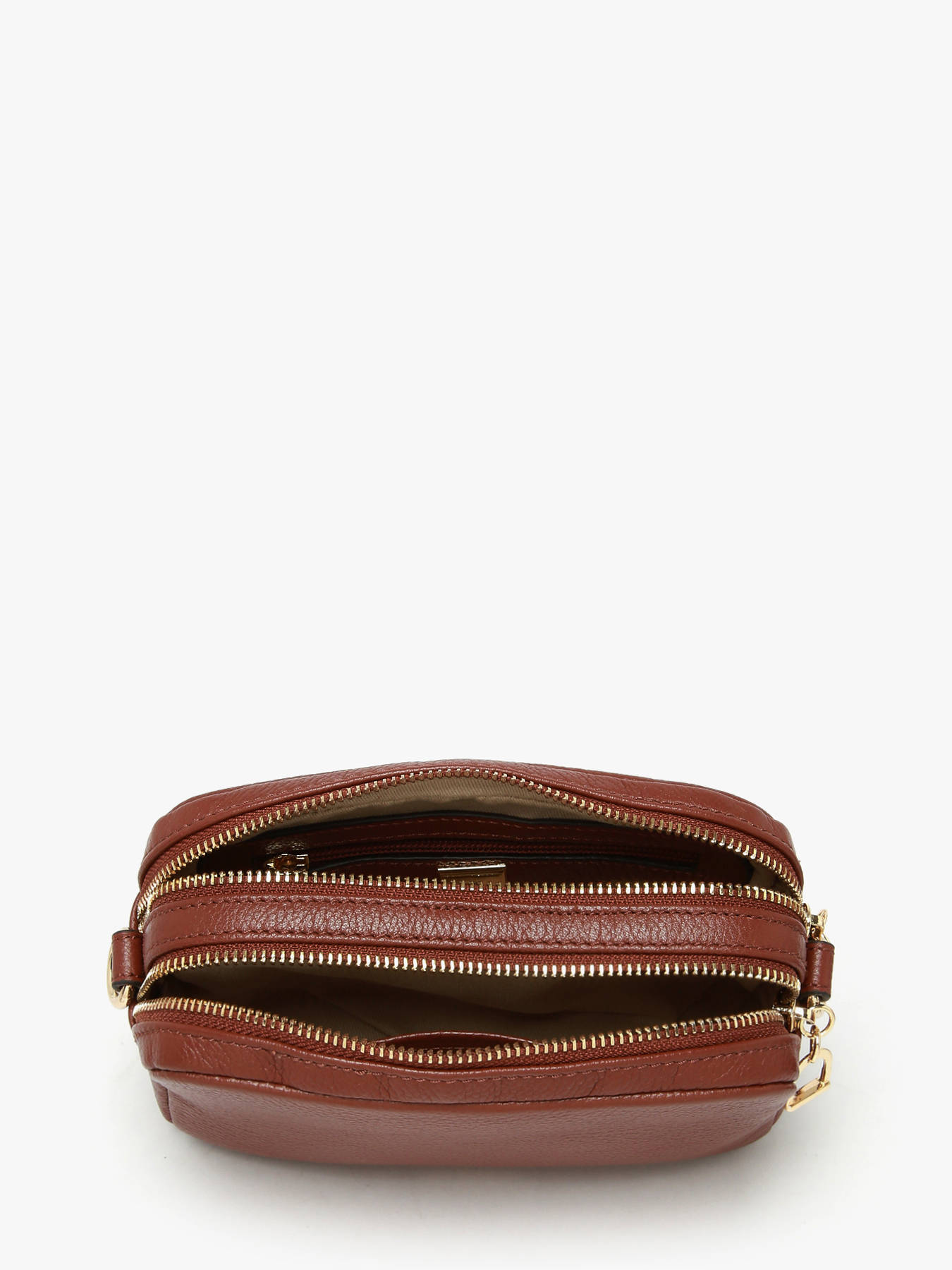 Crafted from grained cowhide leather, the camera bag shoulder bag from the TRADITION line by ETRIER perfectly combines elegance and practicality. Featuring a double zip closure, two compartments, a slip pocket, and a zipped pocket, it offers optimal organization for everyday use. Its removable and adjustable shoulder strap adapts to all your preferences, for wearing on the shoulder or crossbody. Enhanced with gold-tone details and the signature stirrup, this structured and timeless model is an essential piece for your wardrobe.